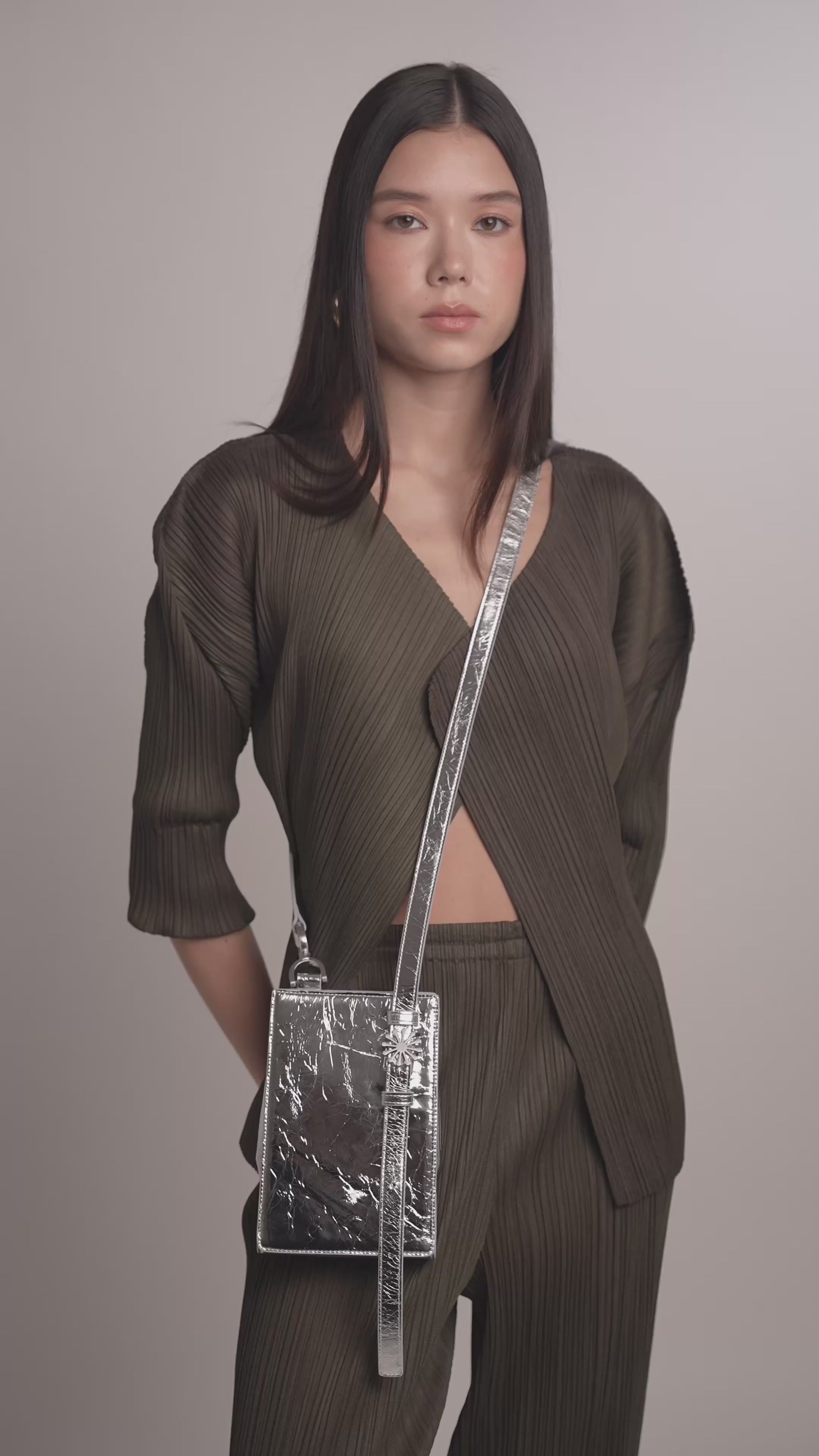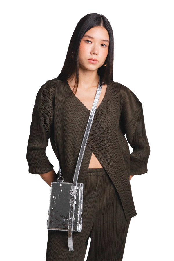 A 1PM shoulder bag é uma bolsa leve, compacta e funcional. Carrega o essencial, celular, chaves, óculos, carteira e fones, com estilo. Seu design exclusivo tem linhas suaves, lateral expansível e alça inspirada em cinto, com fivela de estrela Esthera. Uma bolsa pequena com presença, ideal para o dia a dia.