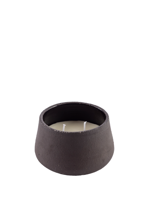 Feita à mão em recipiente de cerâmica artesanal, com cera de coco 100% vegetal.