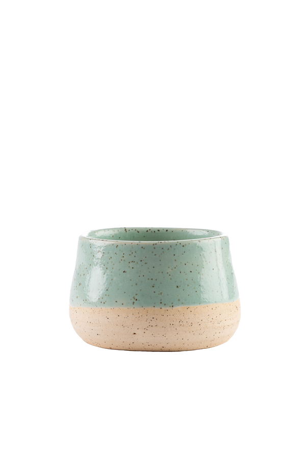 Cera de coco 100% vegetal, livre de parafina e com pavio de algodão parafinado. Recipiente de cerâmica artesanal.